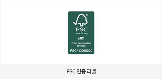 FSC(Forest Stewardship Council) 기준에 따라 관리되는 산림 자원을 사용하여 지속 가능한 숲의 원재료로 제조된 제품임을 인증받은 제품