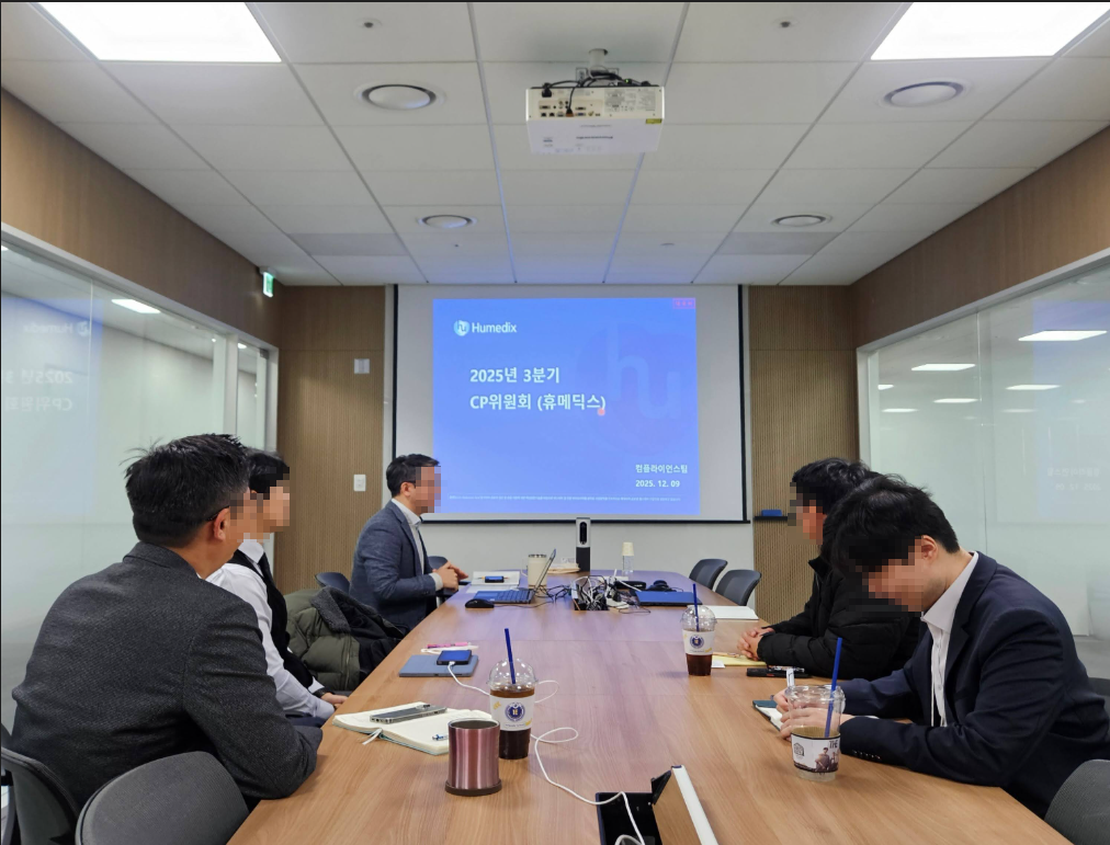 휴메딕스 컴플라이언스팀은 2025년 9월17일(수) 25년 2분기 CP위원회를 개최하였습니다. 대표이사 및 자율준수관리자, CP위원..